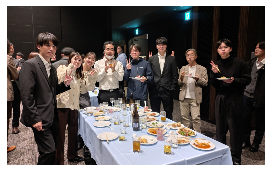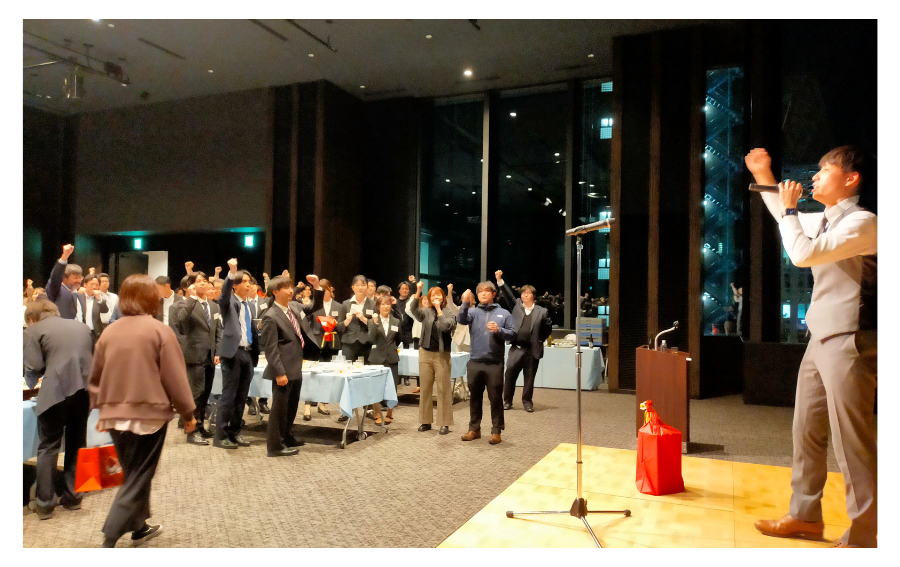 忘年会での1枚。左が社長の野山です。若手社員の中にもスッと入りこんで溶け込みます(笑)
